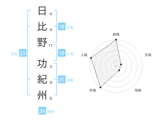 日比野 功紀州さんの総格は39画の5点!