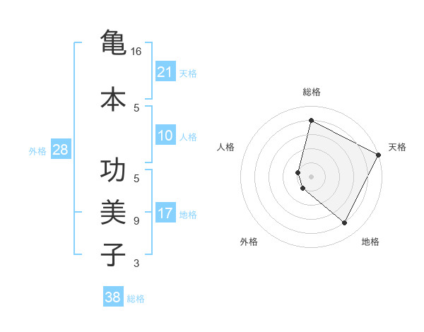 亀本 功美子さんを姓名の画数から五運を鑑定