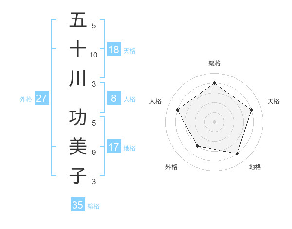 五十川 功美子さんを姓名の画数から五運を鑑定