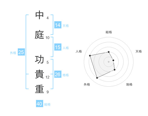 中庭 功貴重さんの総格は40画の2点!