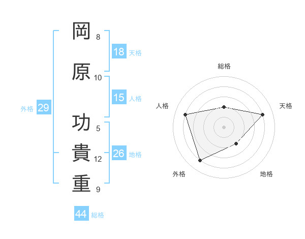 岡原 功貴重さんの総格は44画の2点!