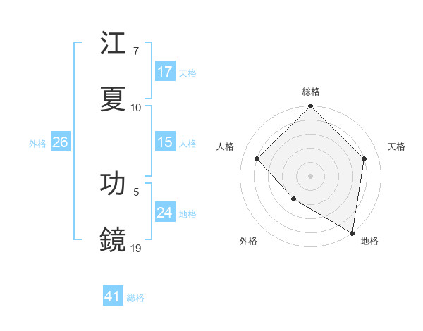 江夏 功鏡さんを姓名の画数から五運を鑑定