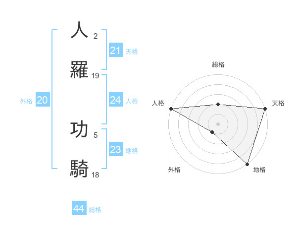 人羅 功騎さんを姓名の画数から五運を鑑定