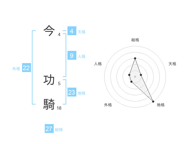 今 功騎さんの総格は27画の3点!