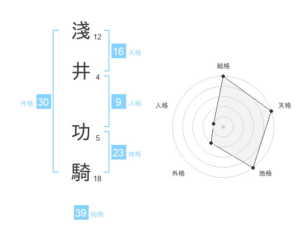 淺井 功騎さんの総格は39画の5点!