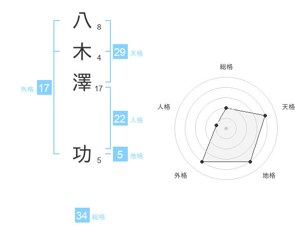 八木澤 功さんの地格は5画の4点!