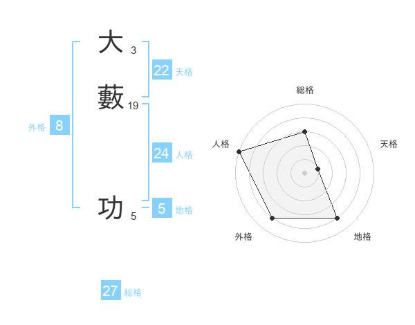 家系が持つ宿命的な運勢を表します。祖先から受け継いだ苗字ですので自分の力が及びません。家柄を象徴します。