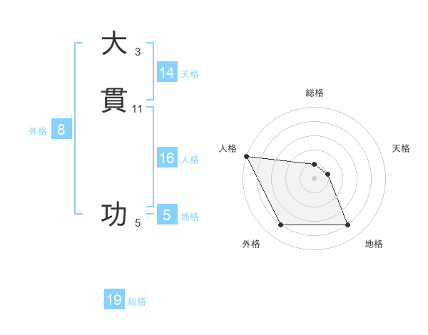 大貫 功さんを姓名の画数から五運を鑑定