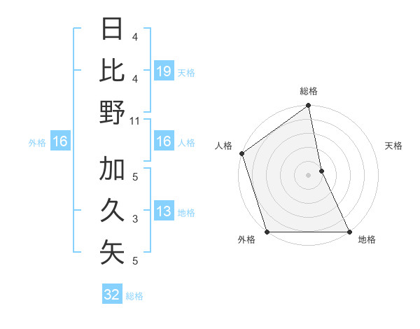 日比野 加久矢さんを姓名の画数から五運を鑑定