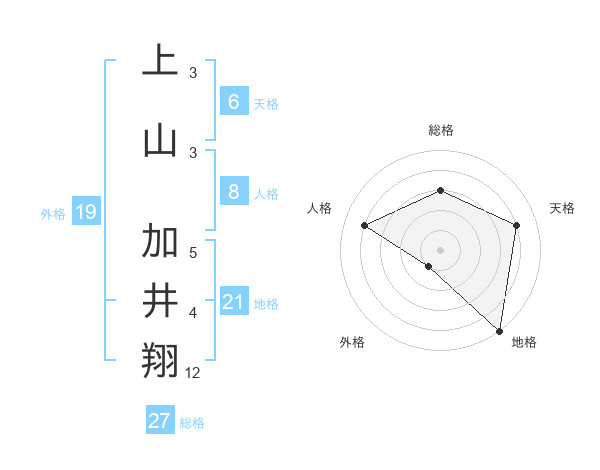 上山 加井翔さんを姓名の画数から五運を鑑定