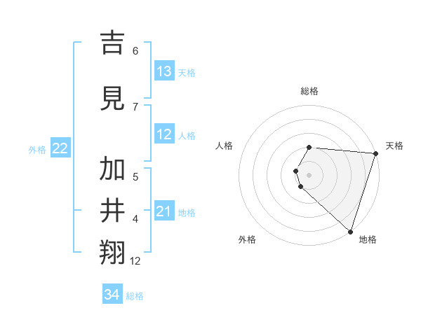 吉見 加井翔さんを姓名の画数から五運を鑑定