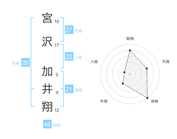 宮沢 加井翔さんを姓名の画数から五運を鑑定