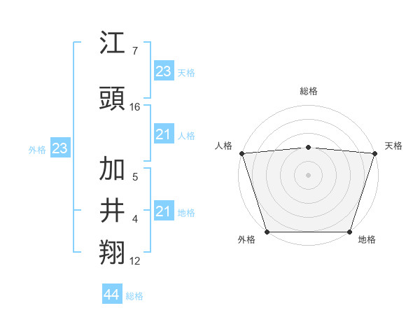 江頭 加井翔さんを姓名の画数から五運を鑑定