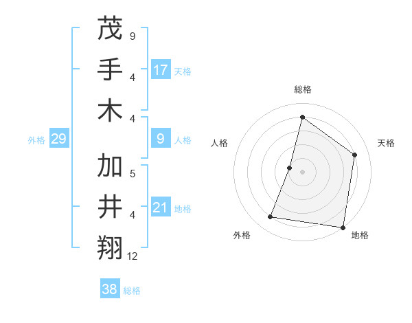 茂手木 加井翔さんを姓名の画数から五運を鑑定
