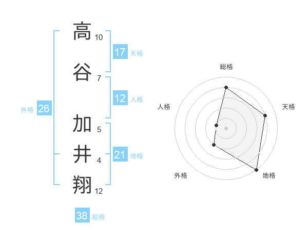 高谷 加井翔さんの総格は38画の4点
