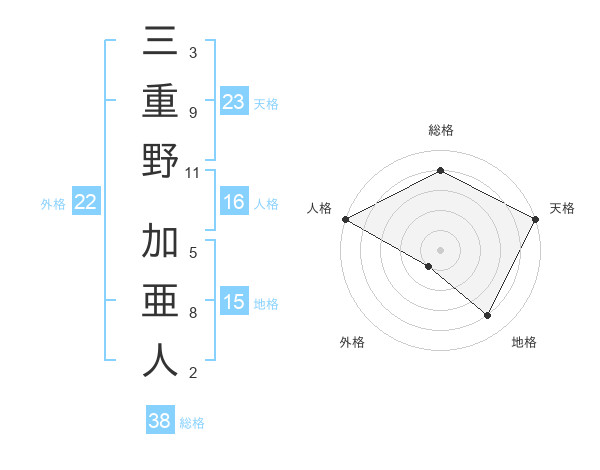 三重野 加亜人さんを姓名の画数から五運を鑑定