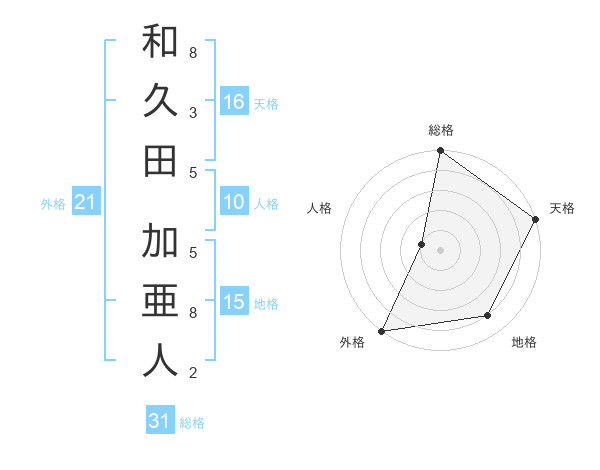 和久田 加亜人さんを姓名の画数から五運を鑑定