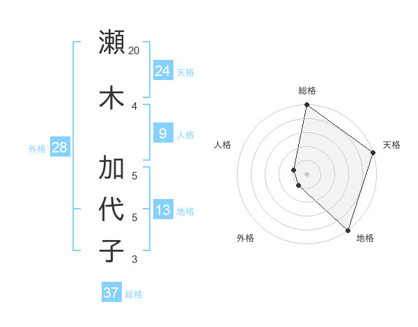 瀬木 加代子さんの総格は37画の5点!