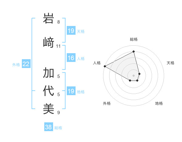 岩﨑 加代美さんを姓名の画数から五運を鑑定
