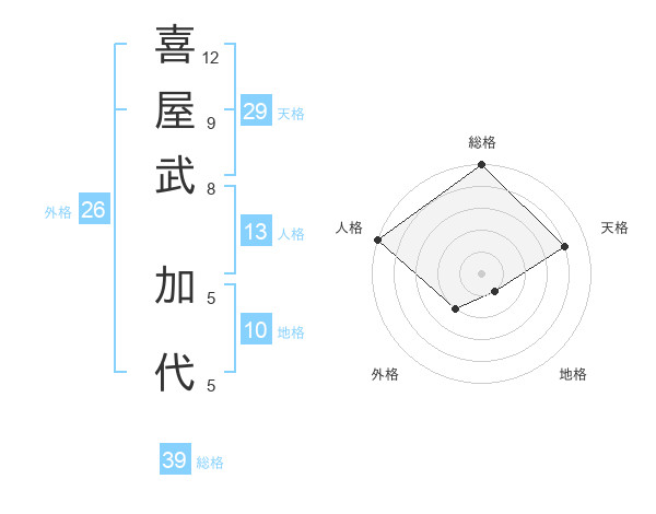 喜屋武 加代さんを姓名の画数から五運を鑑定