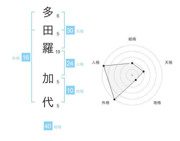 多田羅 加代さんを姓名の画数から五運を鑑定