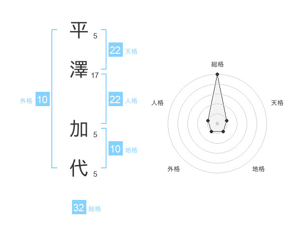 平澤 加代さんの天格は22画の1点!