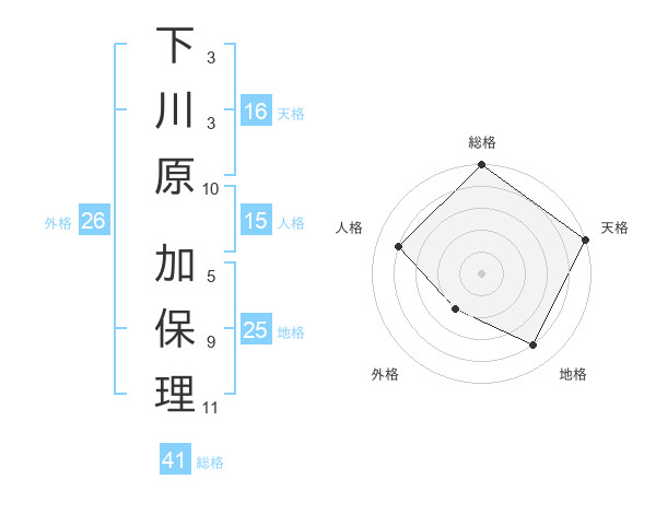 下川原 加保理さんを姓名の画数から五運を鑑定