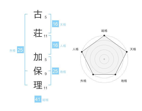 古荘 加保理さんの総格は41画の5点!