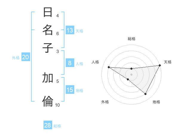 日名子 加倫さんの天格は13画の5点!