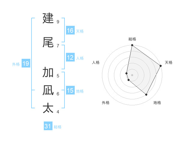 建尾 加凪太さんを姓名の画数から五運を鑑定