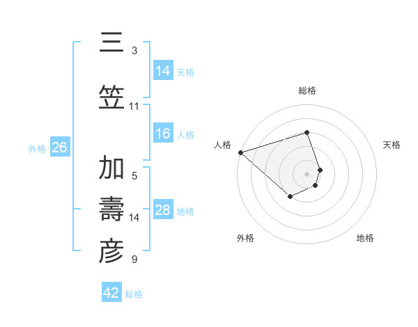 三笠 加壽彦さんを姓名の画数から五運を鑑定