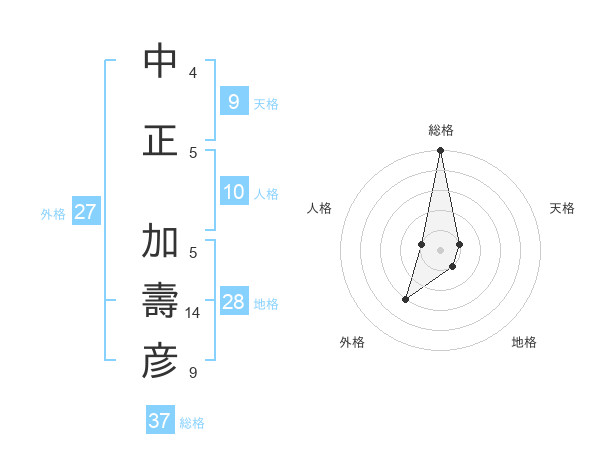 中正 加壽彦さんの総格は37画の5点!
