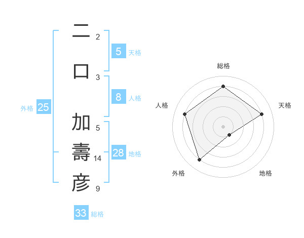 二口 加壽彦さんを姓名の画数から五運を鑑定