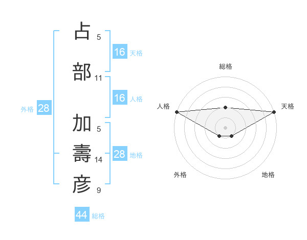 占部 加壽彦さんを姓名の画数から五運を鑑定