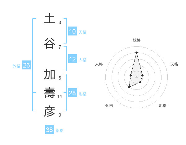 土谷 加壽彦さんを姓名の画数から五運を鑑定