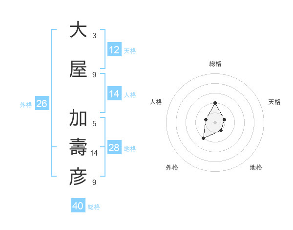 大屋 加壽彦さんを姓名の画数から五運を鑑定