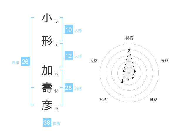 小形 加壽彦さんの総格は38画の4点!