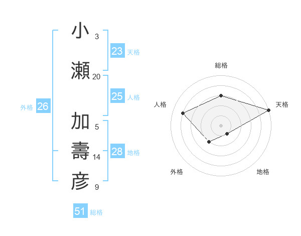 小瀬 加壽彦さんの総格は51画の3点!