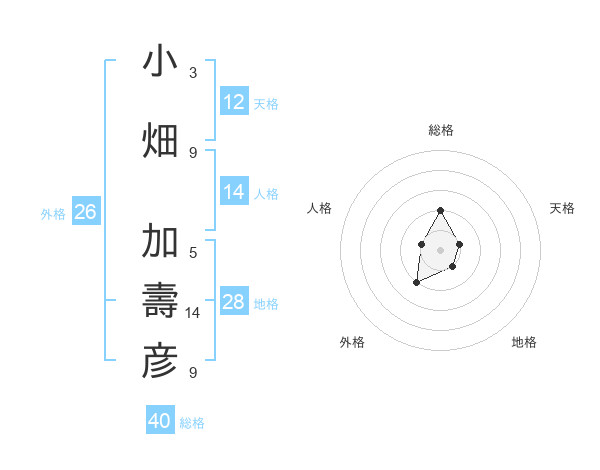小畑 加壽彦さんの総格は40画の2点!