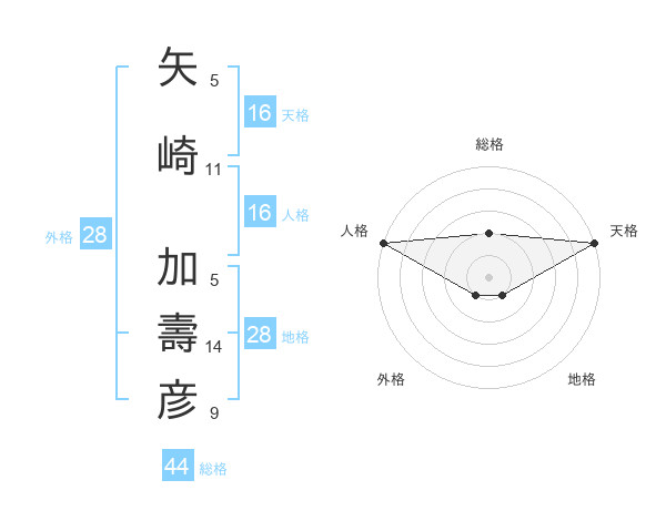 矢崎 加壽彦さんの天格は16画の5点!