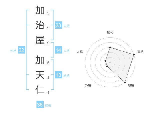 加治屋 加天仁さんの天格は23画の5点