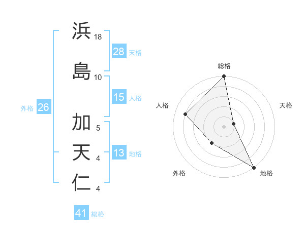 浜島 加天仁さんを姓名の画数から五運を鑑定