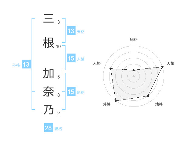 三根 加奈乃さんを姓名の画数から五運を鑑定