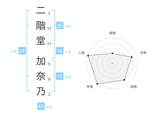 二階堂 加奈乃さんを姓名の画数から五運を鑑定