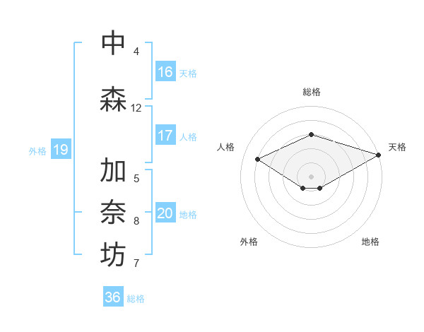 中森 加奈坊さんを姓名の画数から五運を鑑定