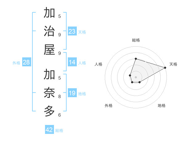 加治屋 加奈多さんを姓名の画数から五運を鑑定