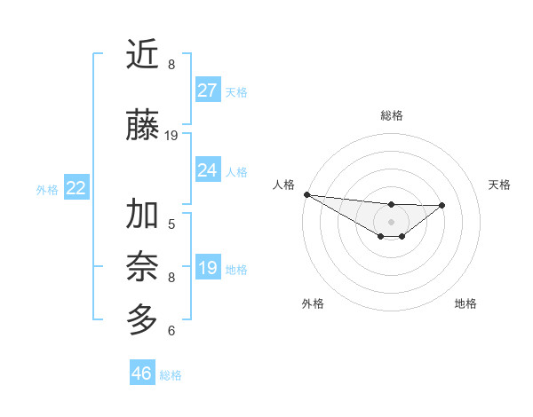 近藤 加奈多さんを姓名の画数から五運を鑑定