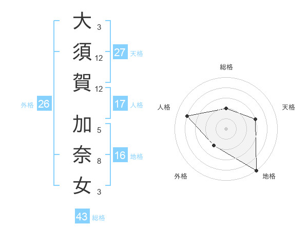 大須賀 加奈女さんの天格は27画の3点!