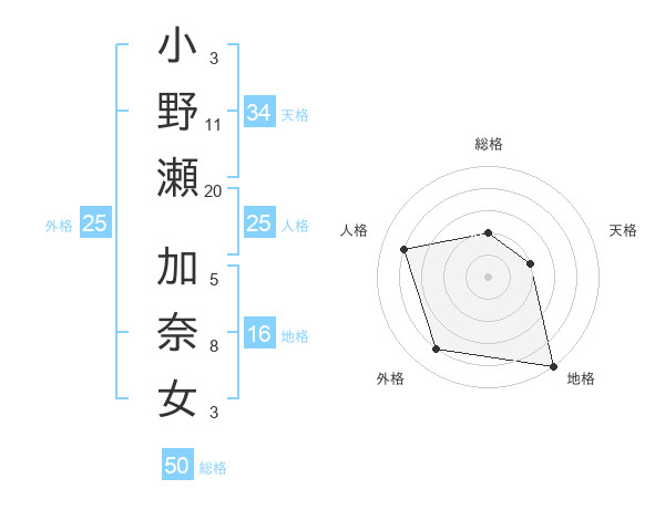 小野瀬 加奈女さんを姓名の画数から五運を鑑定