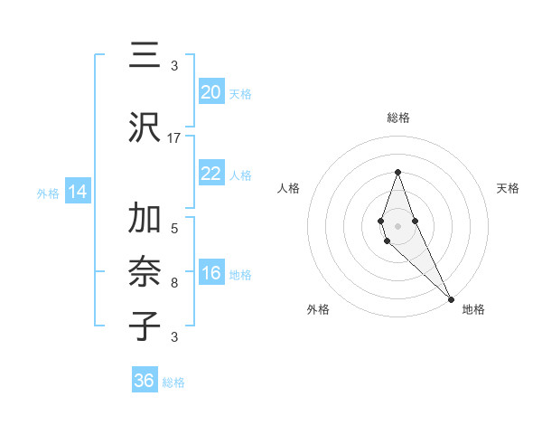 三沢 加奈子さんを姓名の画数から五運を鑑定